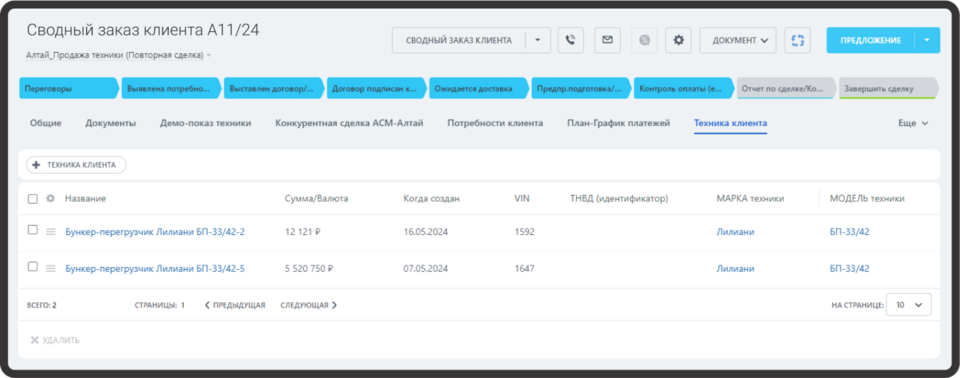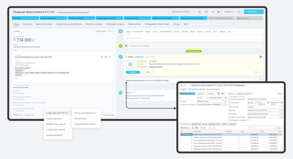 Результатом первого этапа интеграции стала связка 1С и Битрикс24 по направлению продаж спецтехники: