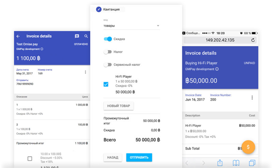 Счёт создаётся за пару минут в Web-интерфейсе сервиса GMPay или в товарно-учётной программе