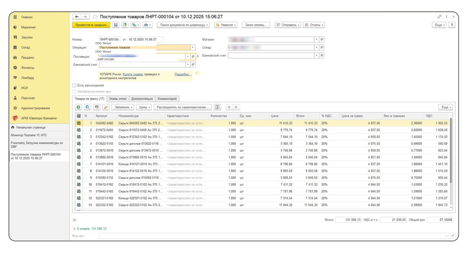 Интеграция 1С с ГИИС ДМДК: отраслевое решение для учета ювелирных изделий