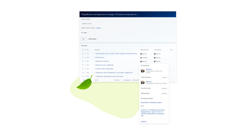 Экологическая отчетность – это другой тип услуг Сибирского центра экологии и аудита, когда клиент передает компании обязанности по ведению и сдаче периодической отчетности в надзорные органы. Для автоматизации этой услуги был разработан еще один Smart-процесс, который позволяет вести учет и накапливать данные об экологической отчетности заказчиков.